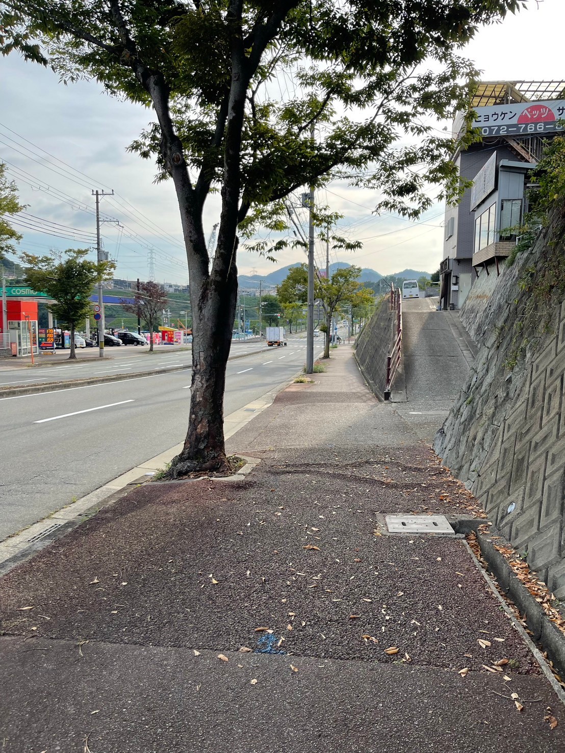 滑りやすくて危険との苦情が寄せられ、高木の伐採と歩道整備が実現しました。