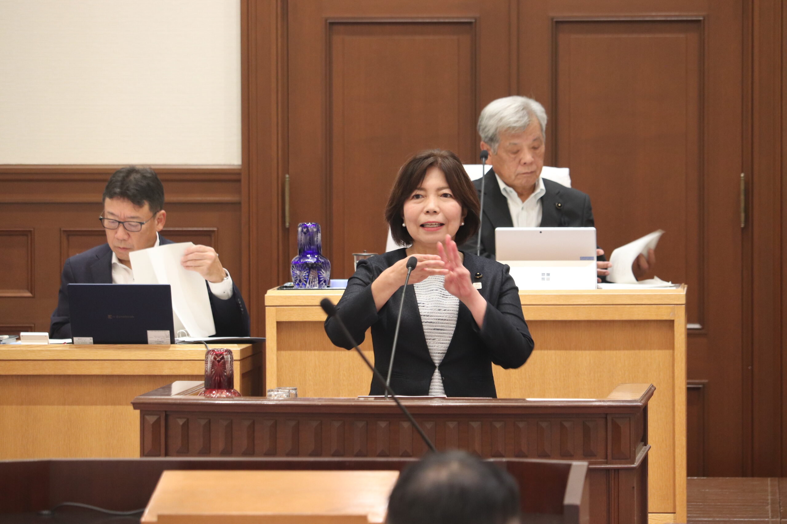 手話を使い「麻田ひさみです。手話は言語である」と表現し、県の施策の以下6項目について質問致しました。